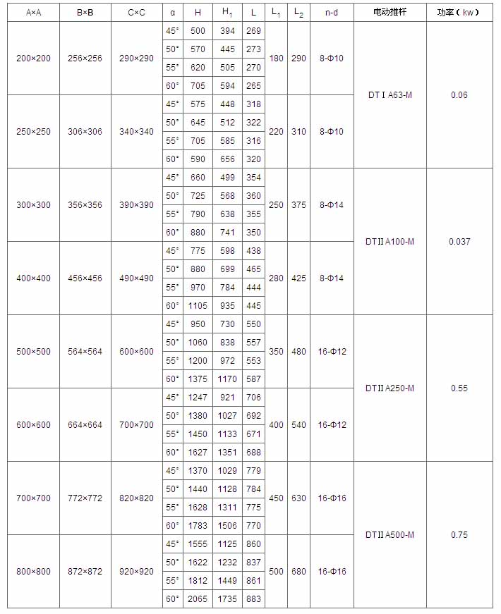| 200×200 | 256×256 | 290×290 | 45° | 267 | 177 | 180 | 290 | 8-Ф10 | DTⅠA63-M | 0.06 |