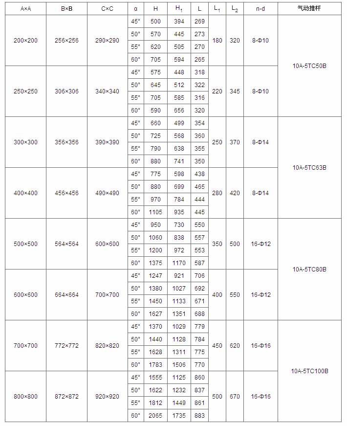 | A×A | B×B | C×C | α | H | L | L1 | L2 | n-d | 電動裝置 | 功率(kw) |